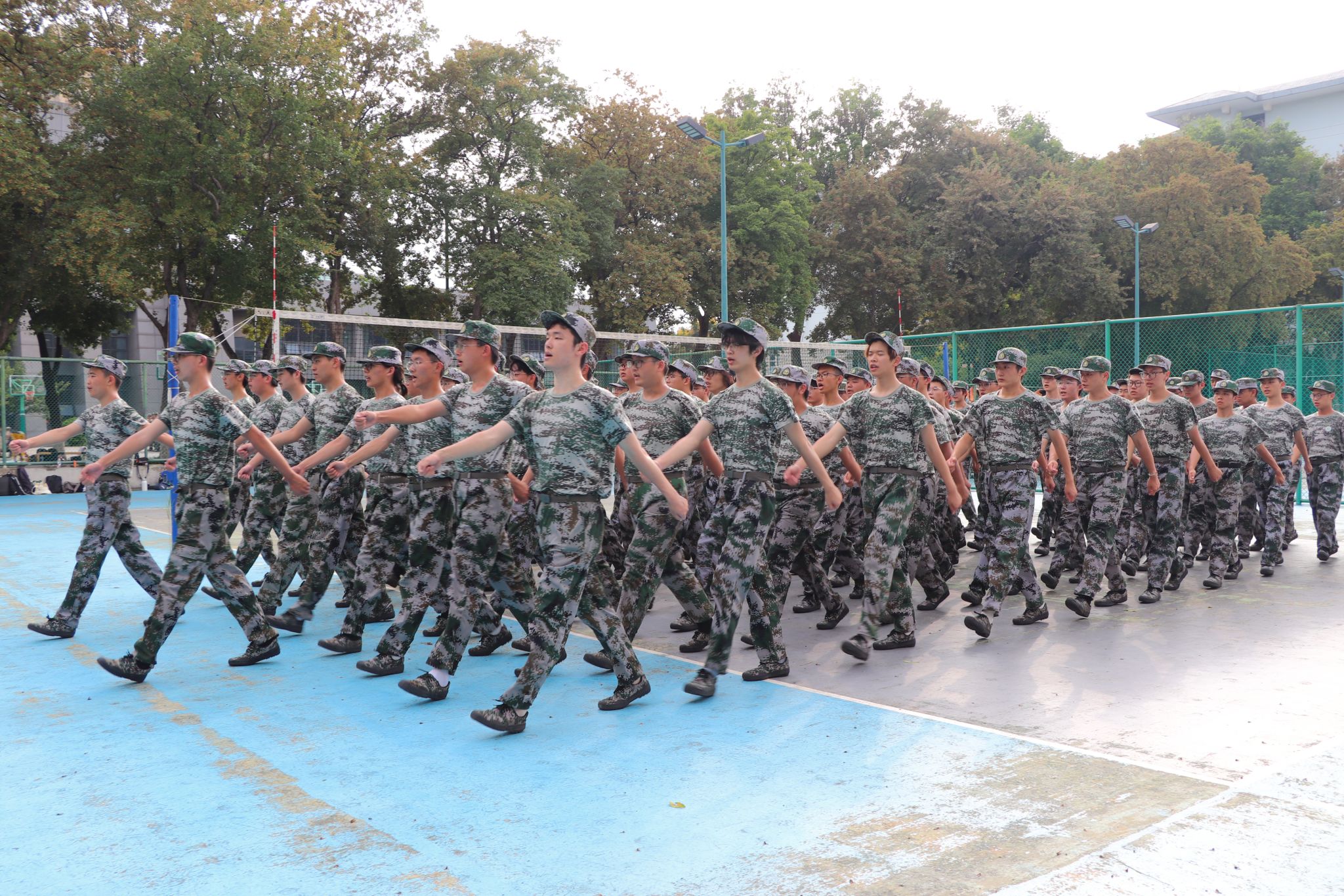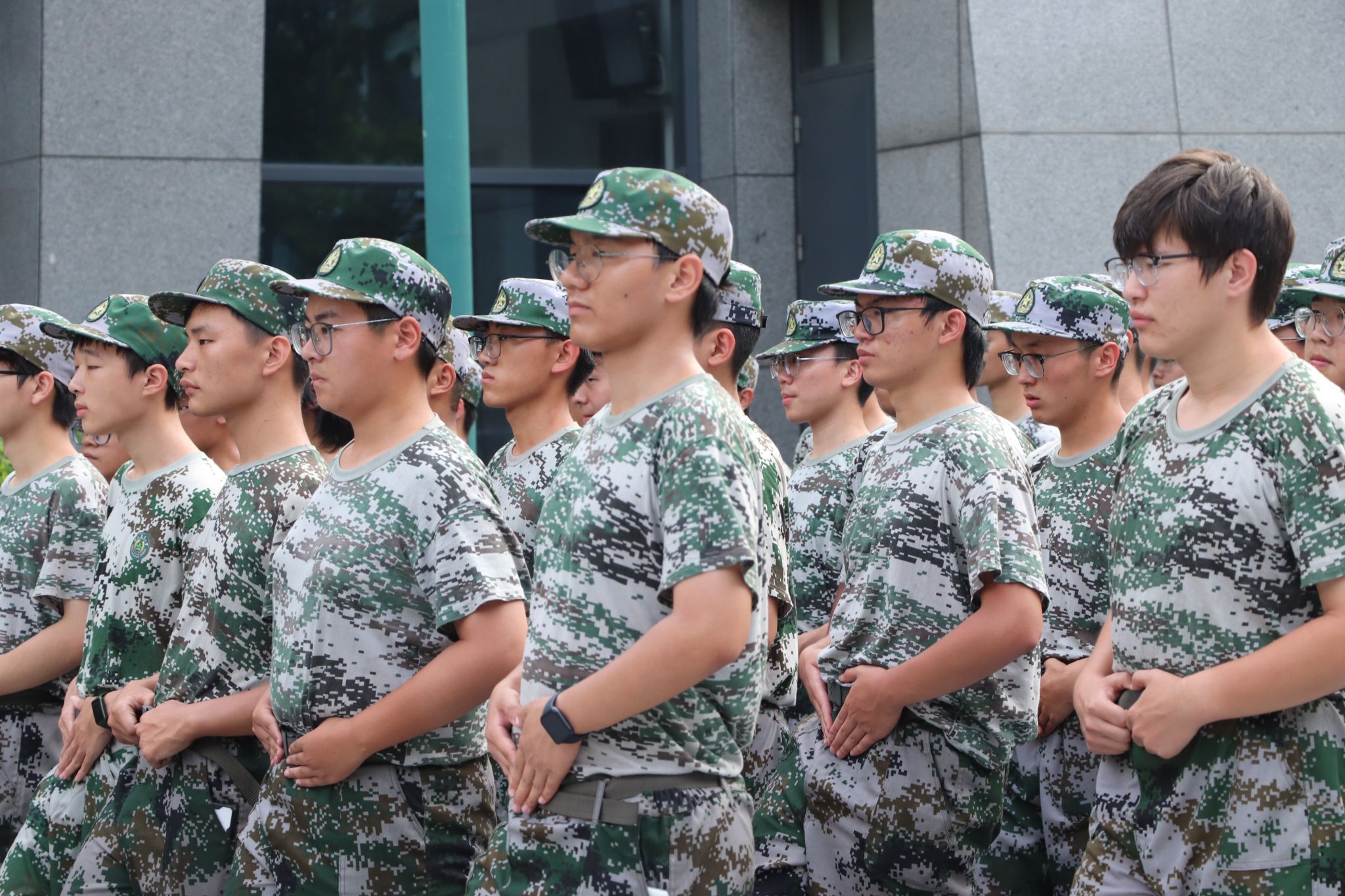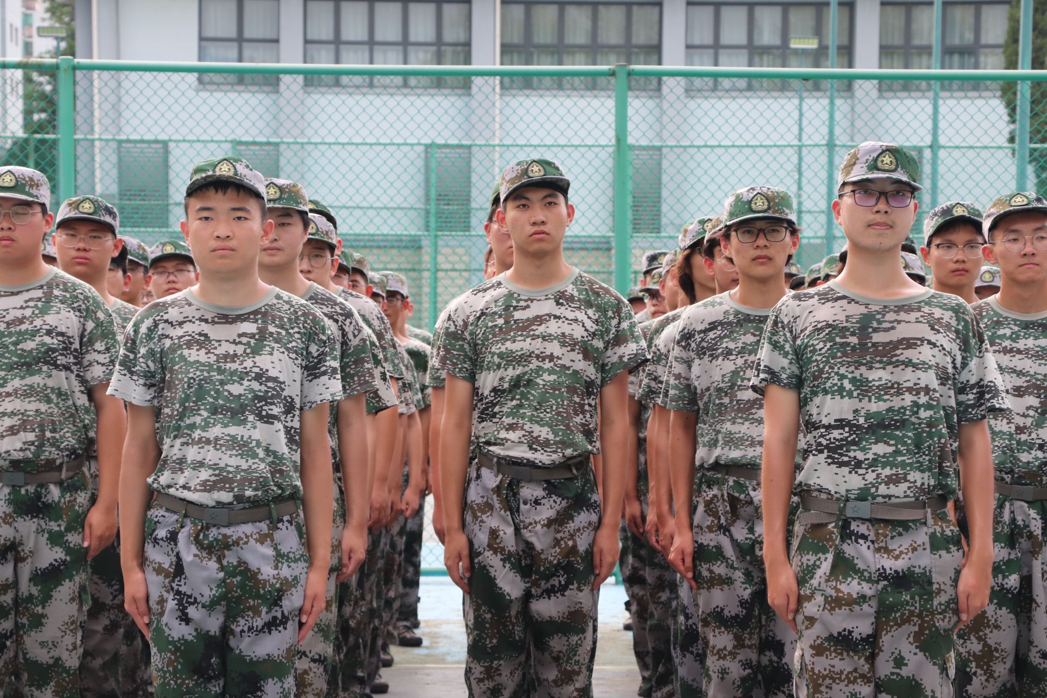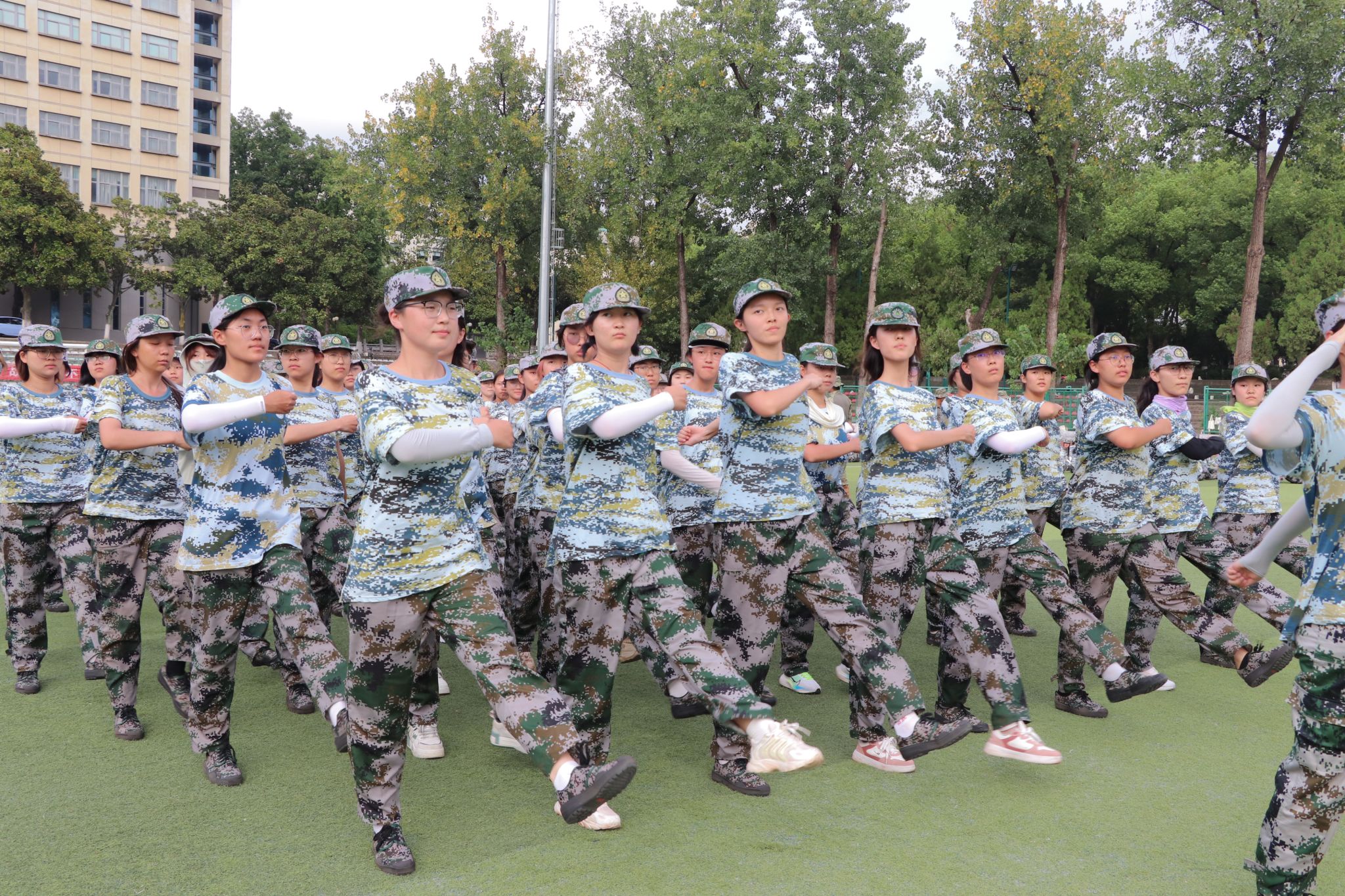 夏末余温未散,骄阳依旧高悬。农学院2025级全体新生,身着整齐迷彩,以饱满的热情,肃立在操场,在烈日下展示独属于他们的军训风采。
