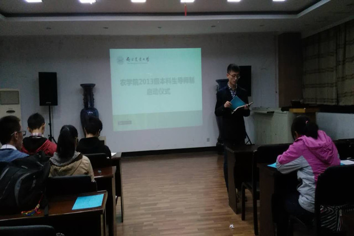 11月12日晚,农学院2013级本科生导师制启动仪式在生科楼E1001举行,本次启动仪式由院学习部承办,学生会副主席赵鹏主持。