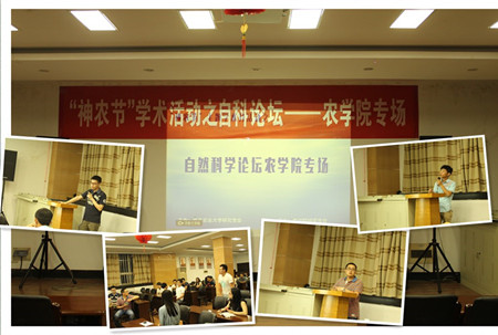 2014年5月26日晚上7点,由南京农业大学研究生会主办,农学院研分会承办的第十届“神农节”自然科学论坛农学院专场在生科楼报告厅E1001举行。本院及来自其他各学院硕士研究生和部分博士研究生参加了此次论坛并认真聆听报告。