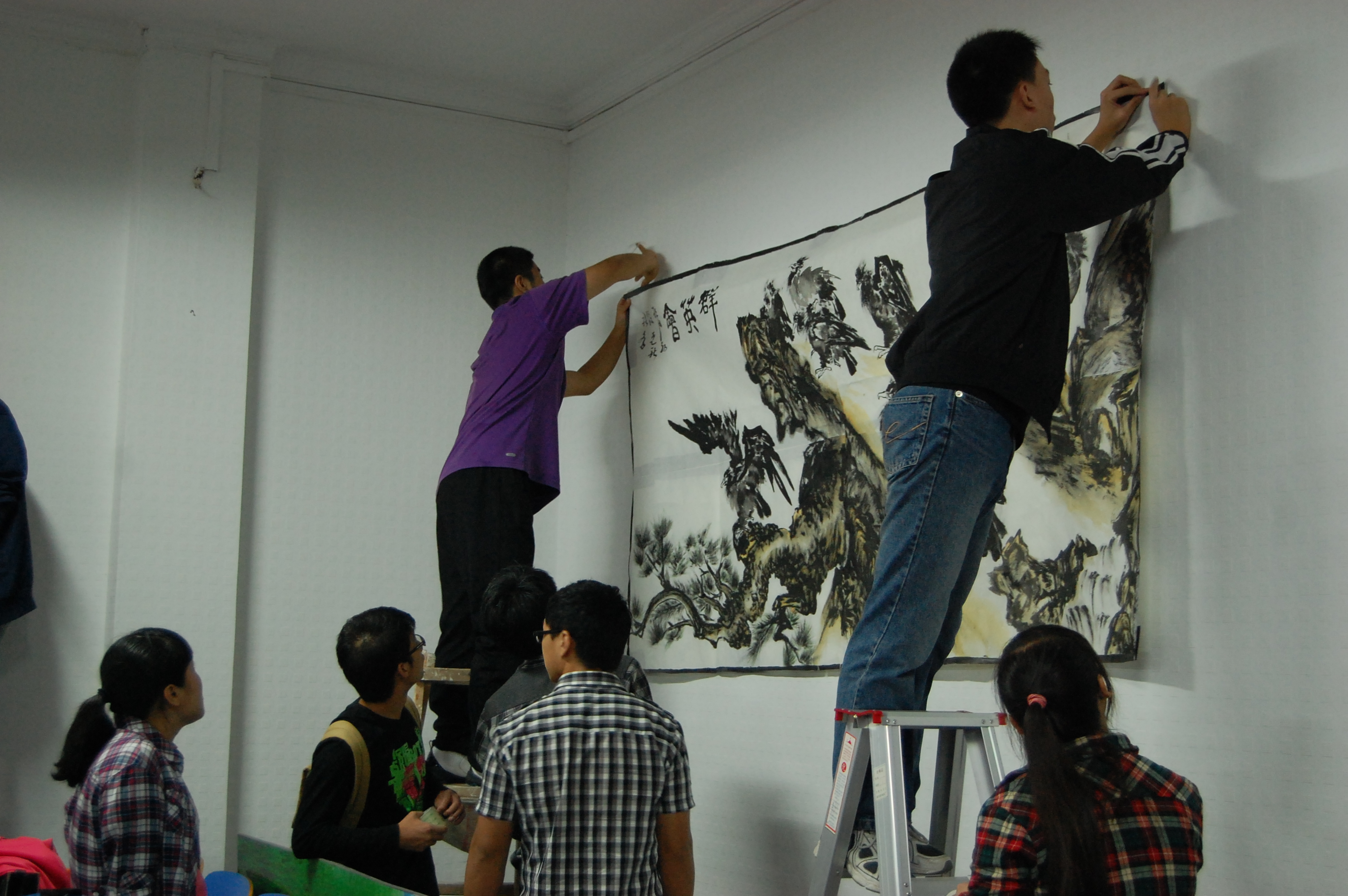 “今年的主题是‘菁菁校园迎莘莘学子’,是大家一起想出来的。会场的布置以营造温馨的气氛为主旨,让新同学们能感受到农学院大家庭的温暖。”学生会主席周庆鹏介绍道。门口摆放的宣传板上是学长学姐们的祝福寄语,黑板上贴着醒目的标语彩纸,窗户上装饰的是同学们吹出的五彩气球,墙壁上是动感的人物剪影贴纸。更有一幅气势雄浑的大型中国画为会场增添了浓浓的中国风,这幅画是才华横溢的宣传部部长丁园的杰作。大家团结协作,互帮互助,将农学院迎新会场布置的温暖美丽。