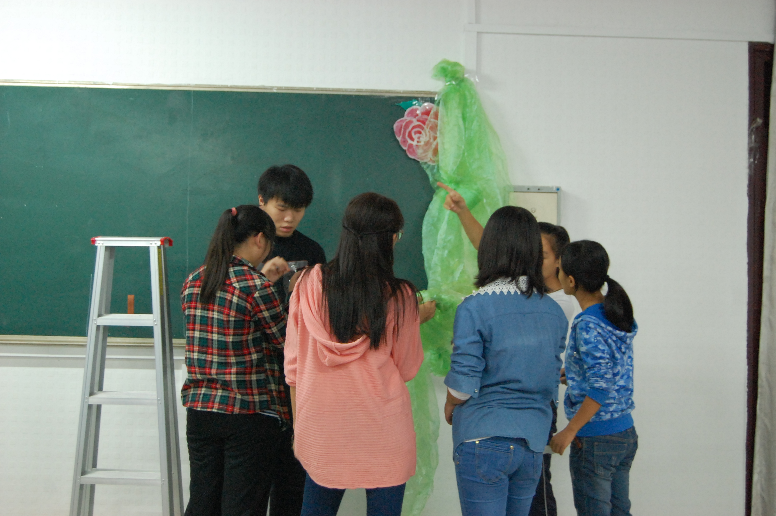 9月6日上午10点,微雨嘀嗒,主楼143农学院迎新会场全新装饰,农学院学生会全体成员率大二同学,正以饱满的情绪有条不紊、井然有序地为迎新会场做细致的准备和精心的布置工作。色彩缤纷的气球,精美的彩纸、恢弘的中国画、细致的标语,同学们齐心协力,会场俨然成为迎接新生的温暖大家庭。